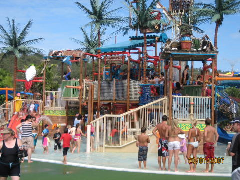 写真は、子供用の遊び場です。水の滑り台や、水鉄砲 など、何でもあります。
