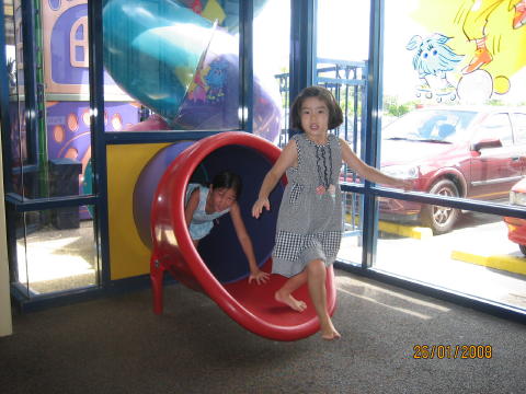 この後、滑り台、ブランコ、滑車の付いたターザンロープ、